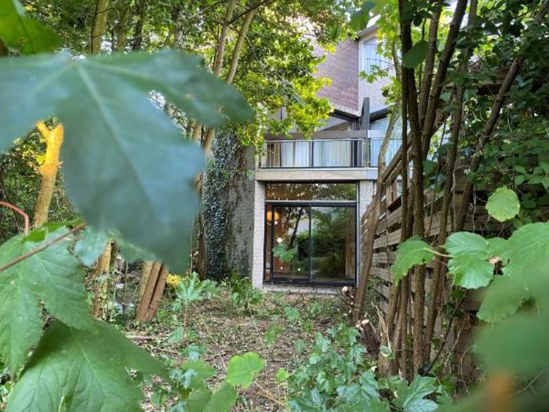 Ruime, zonnige atelierwoning van 3 woonlagen, 5 slaapkamers, drie balkons en een grote tuin rondom, in een parkachtige omgeving.